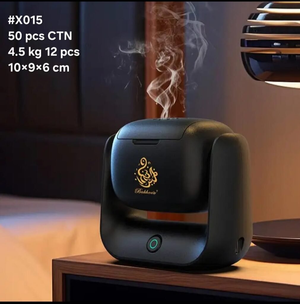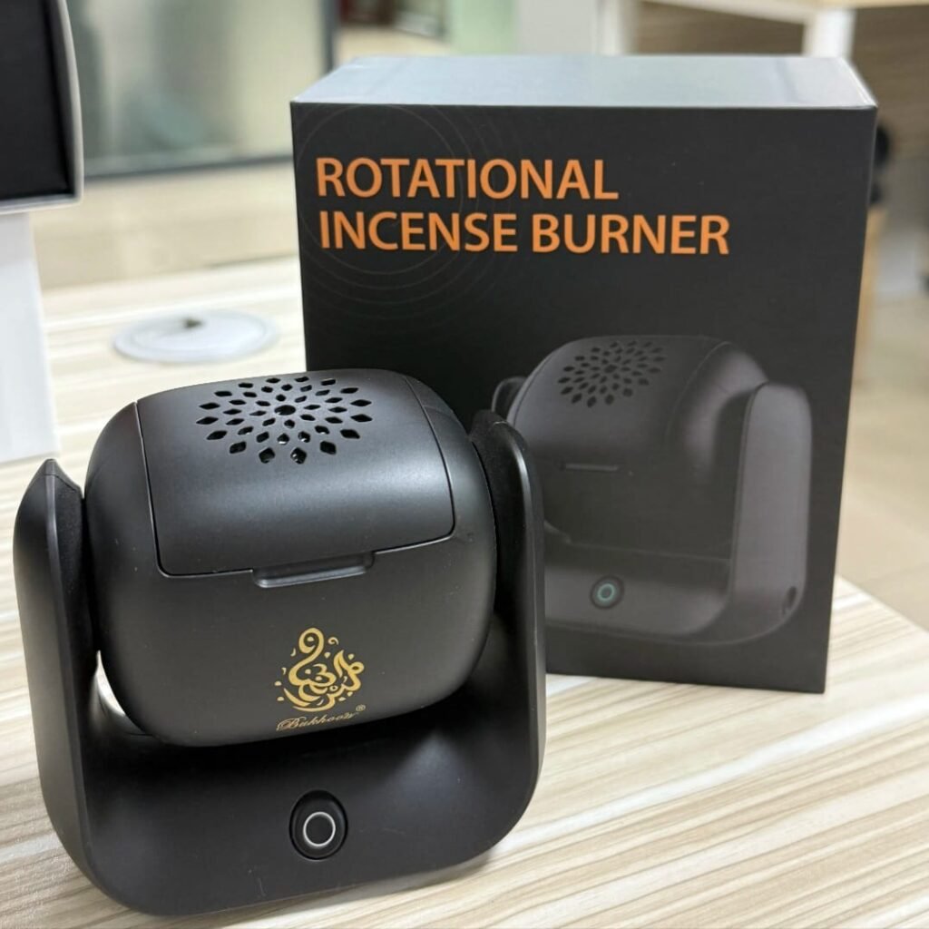 مبخرة كهربائية عملية بتصميم راقٍ، يوجد زر يقوم بأرجحة المبخرة لتوزّيع رائحة البخور بثبات في المكان. مناسبة للبيت والمكتب، سهلة التشغيل وتمنح لمسة فخامة وأجواء مميزة