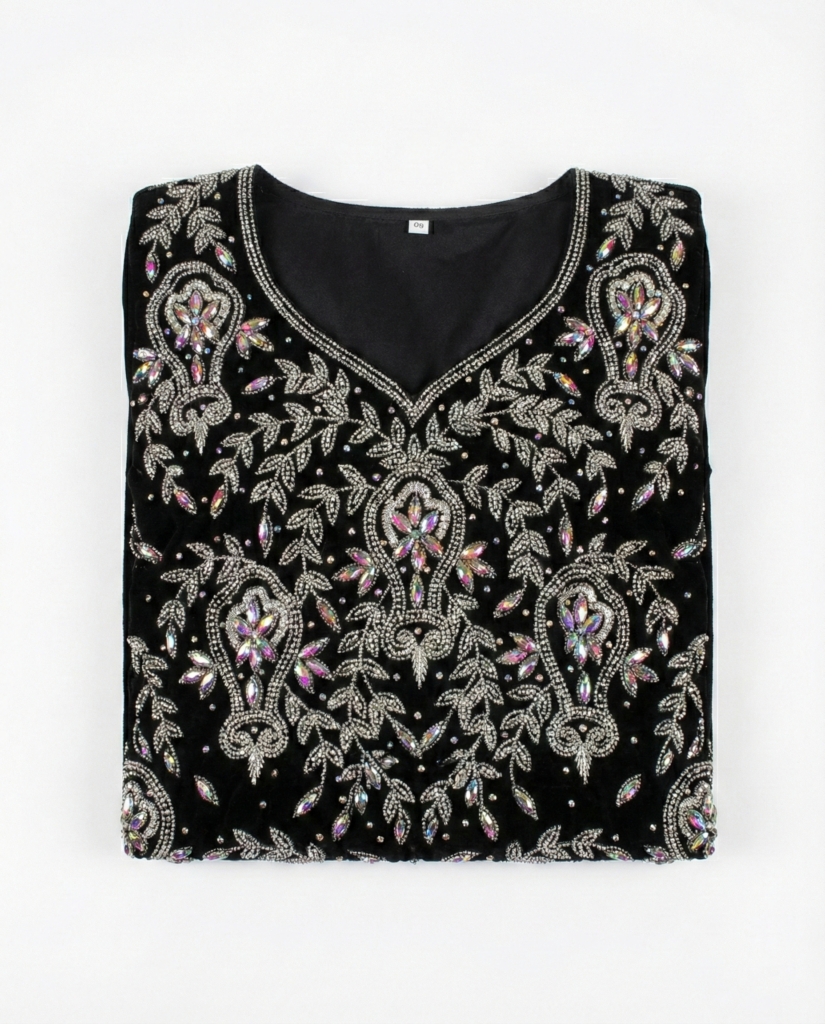 قطعة مخمل مطرزة بكريستال فاخر