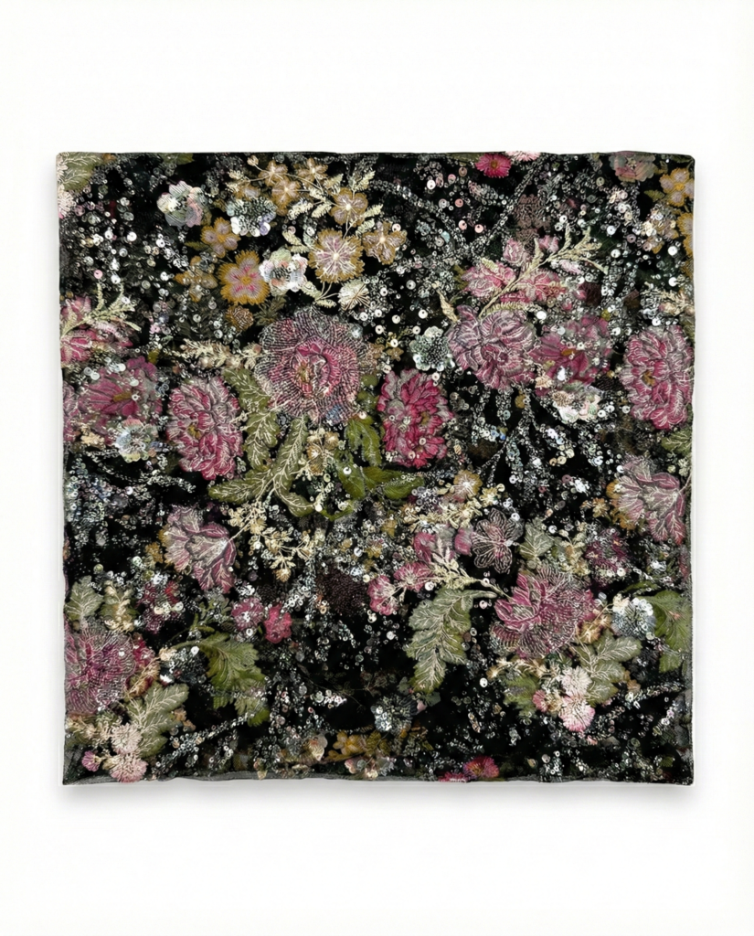 روح العلا · قماش أسود بالورود الوردية (دانتيل)
